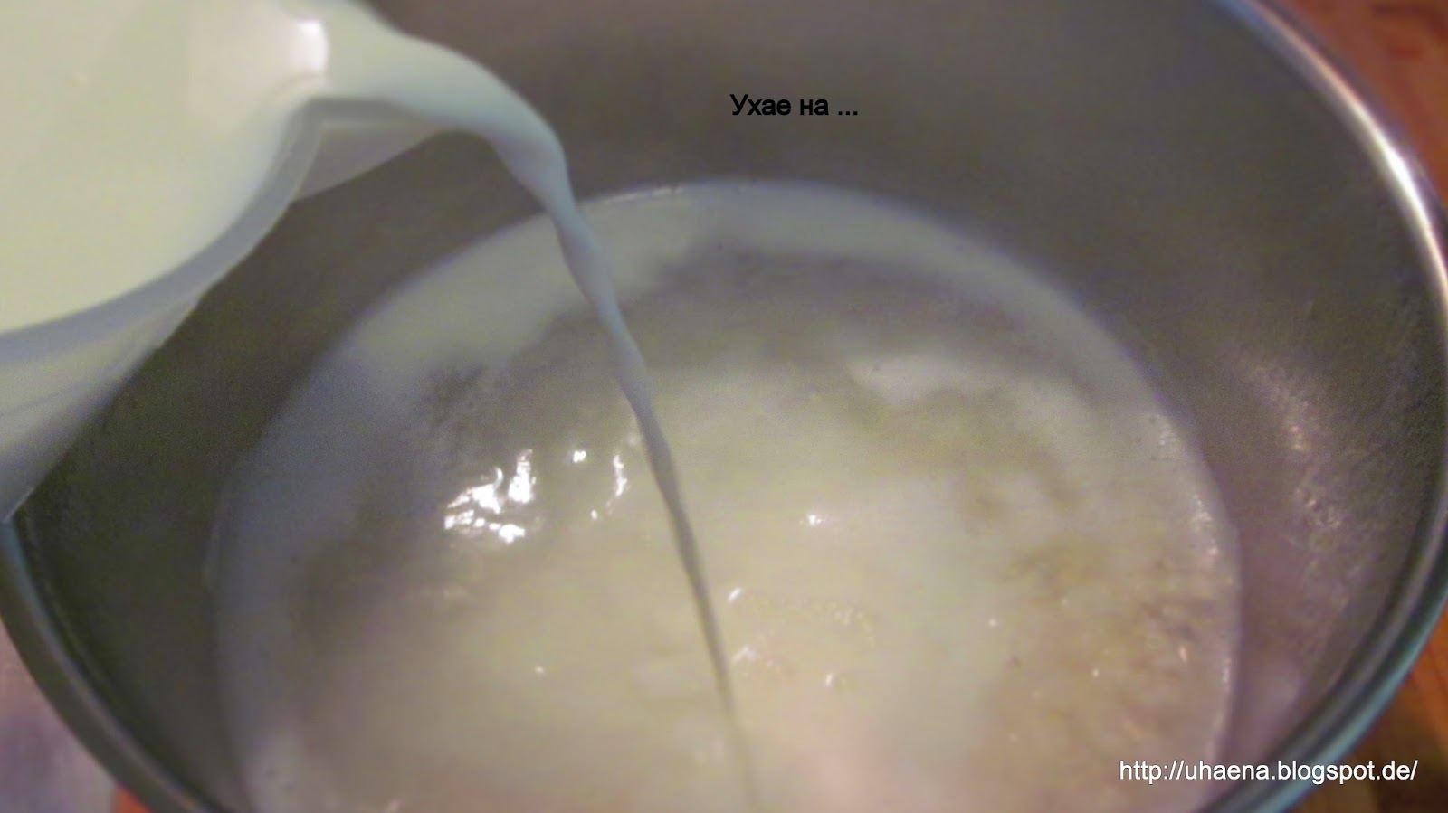 - Измивам ориза много добре като му сменям поне няколко пъти водата. Заливам с водата и щом заври добавям и прясното мляко.