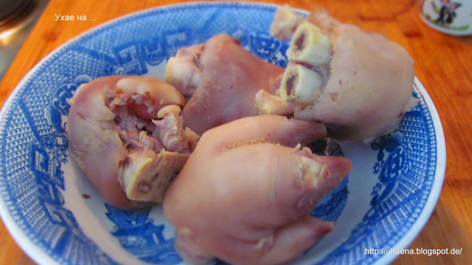 по 2 свински крачета, свински уши, свинска опашка /или с каквото от тези неща разполагате/
