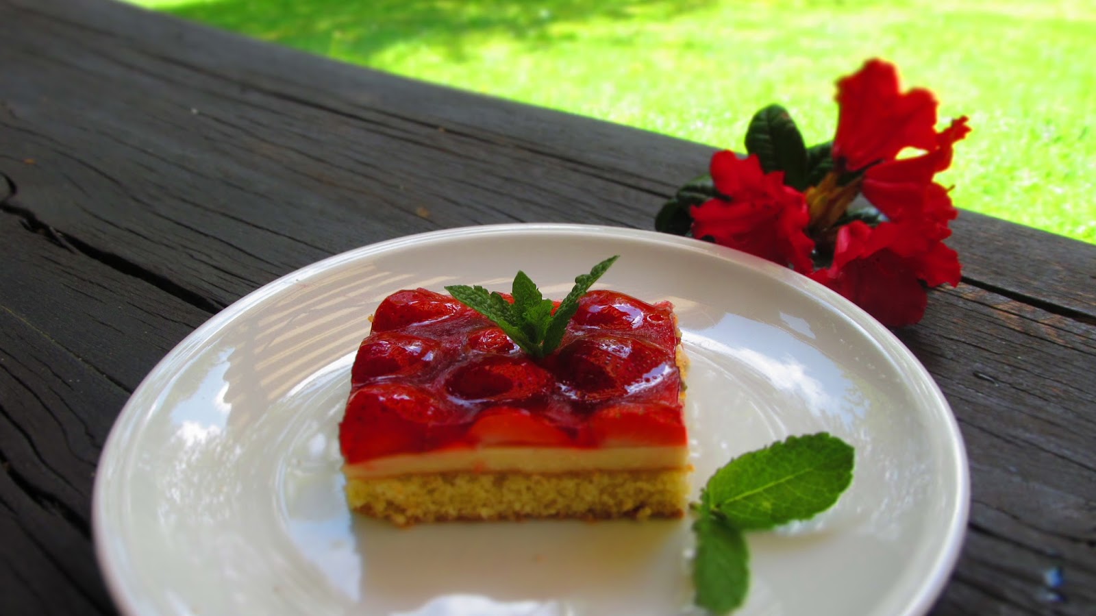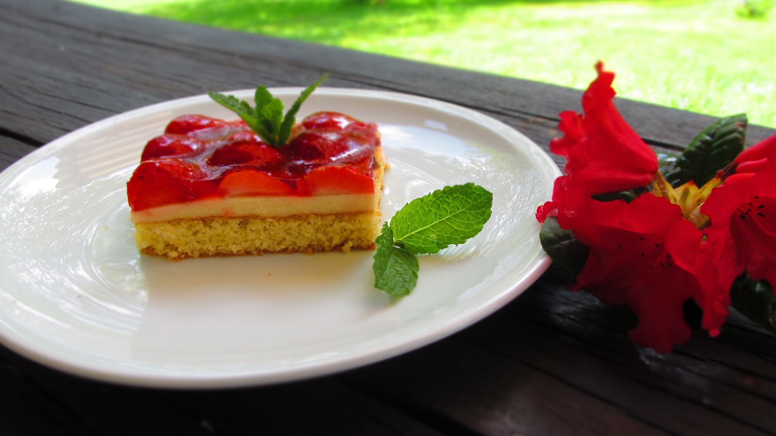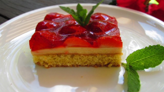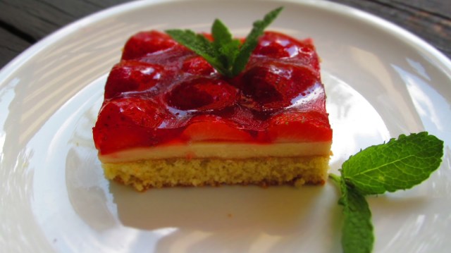 Така че, за любителите на ягодовите сладкиши – една перфектна комбинация от вкусен блат, пудинг и желирани ягоди