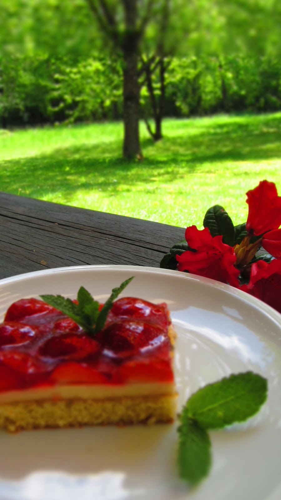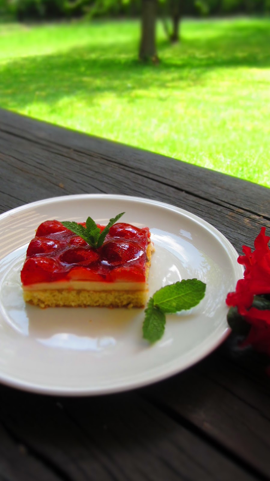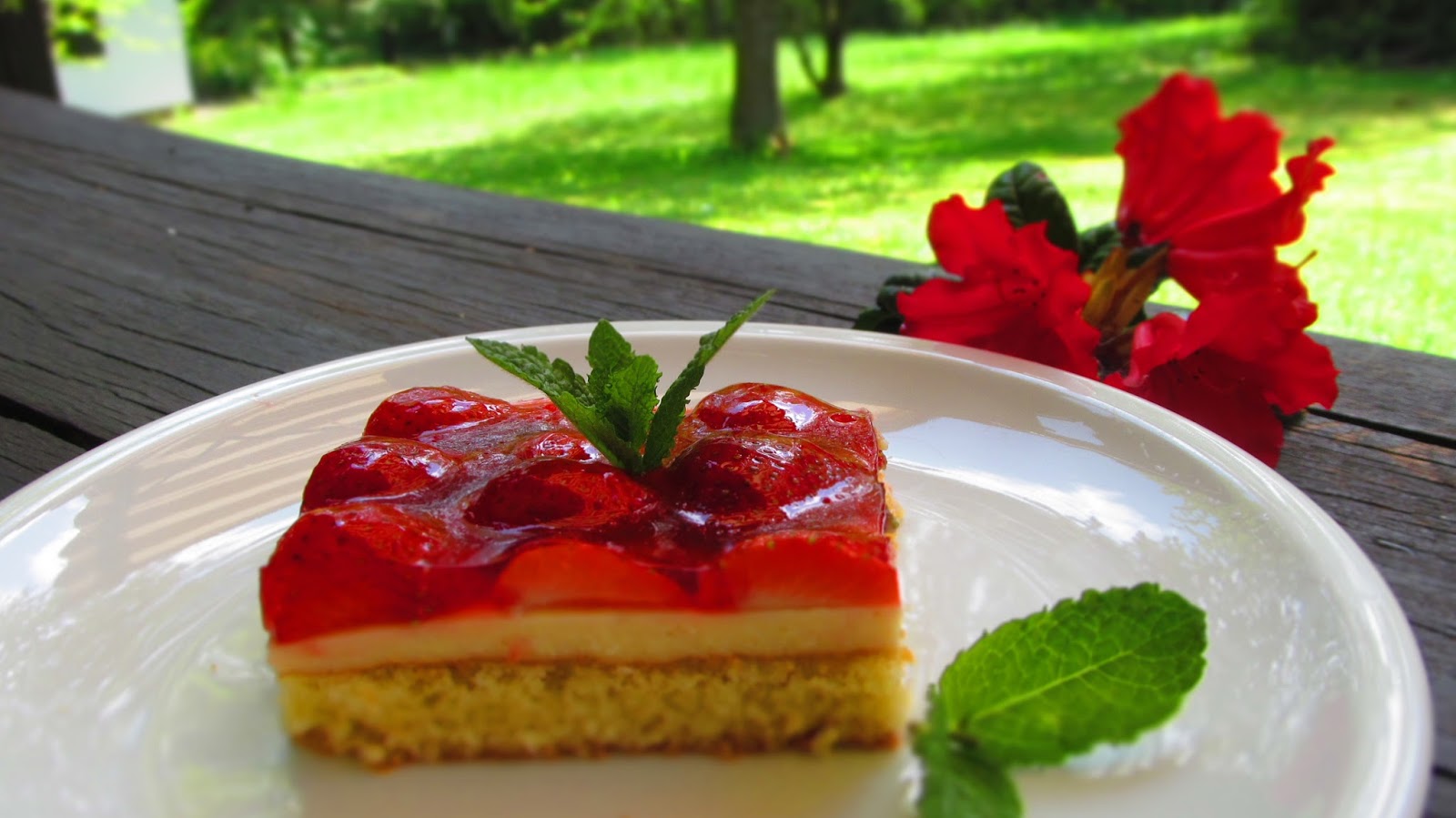 Така че, за любителите на ягодовите сладкиши – една перфектна комбинация от вкусен блат, пудинг и желирани ягоди