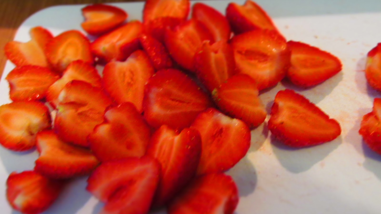 - Измивам ягодите и изрязвам на половина.