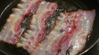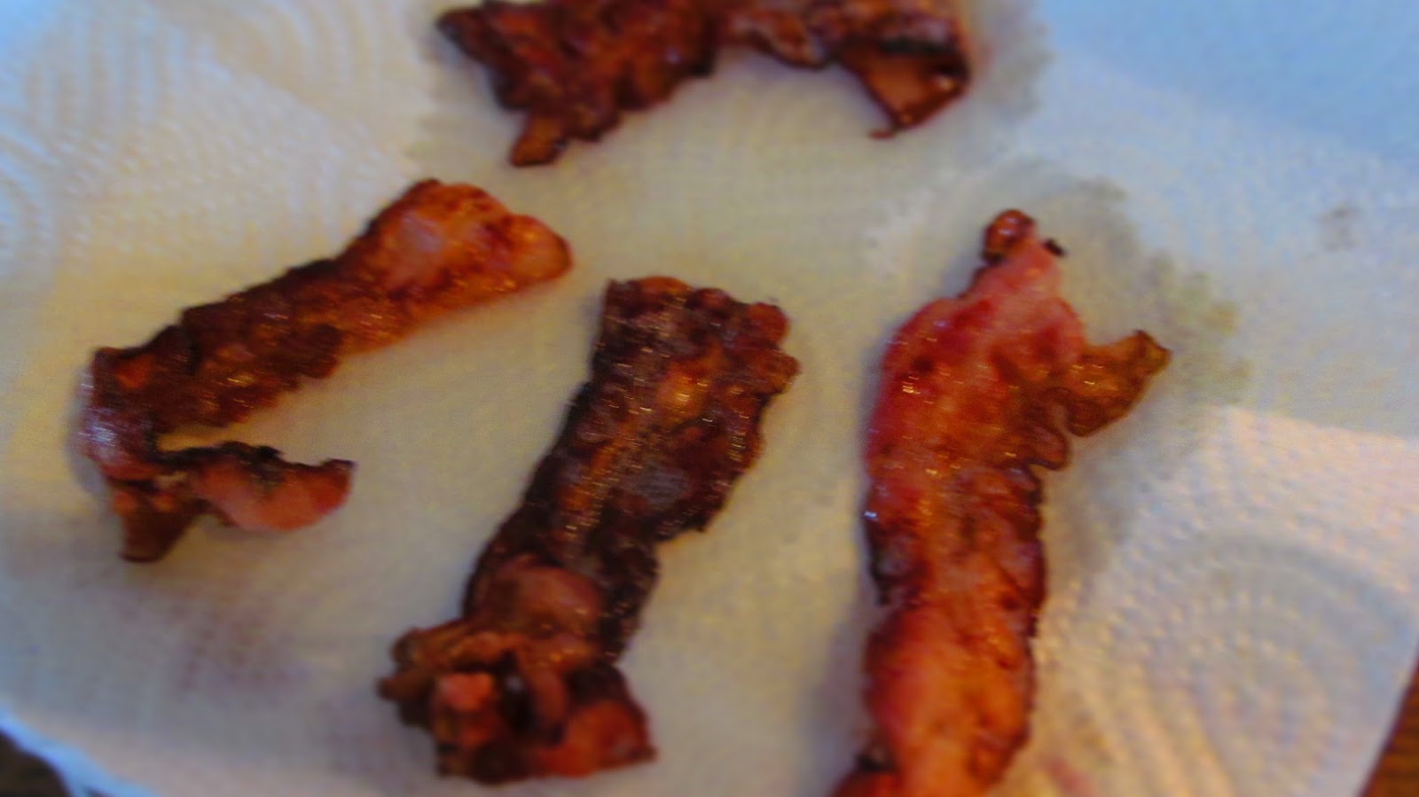 - Беконът изпържвам в малко мазнина до хрупкавост.