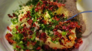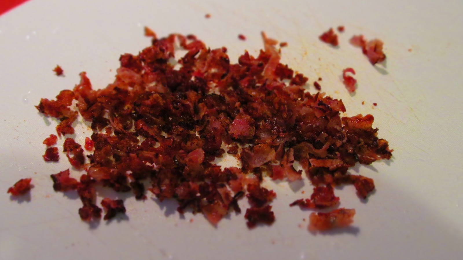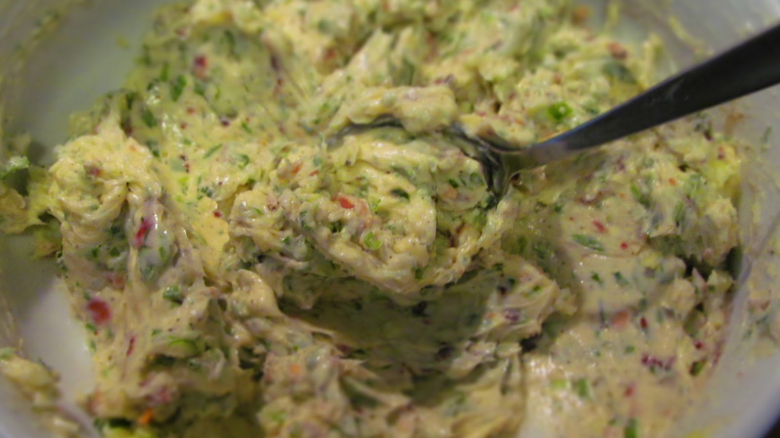 Така, че днес Ви запознавам с моето подправено масло, но с добавката на господин Оливър, а именно – изпържено до хрупкавост беконче. Невероятен аромат добавя този бекон към маслото.
