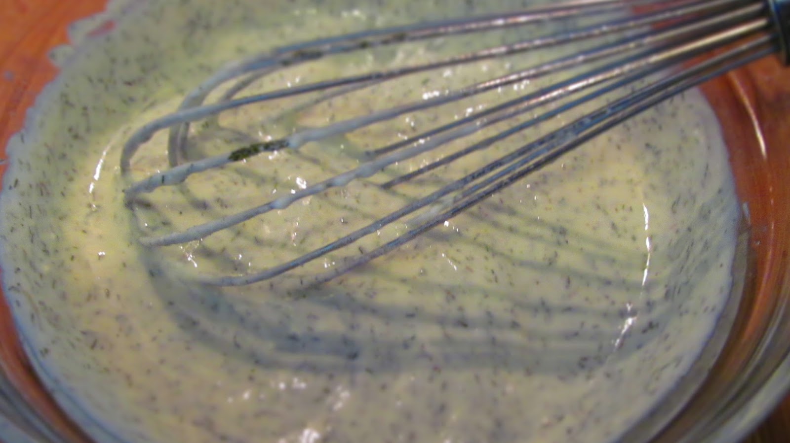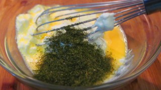 - В купичка разбивам яйцето, киселото мляко и копъра.