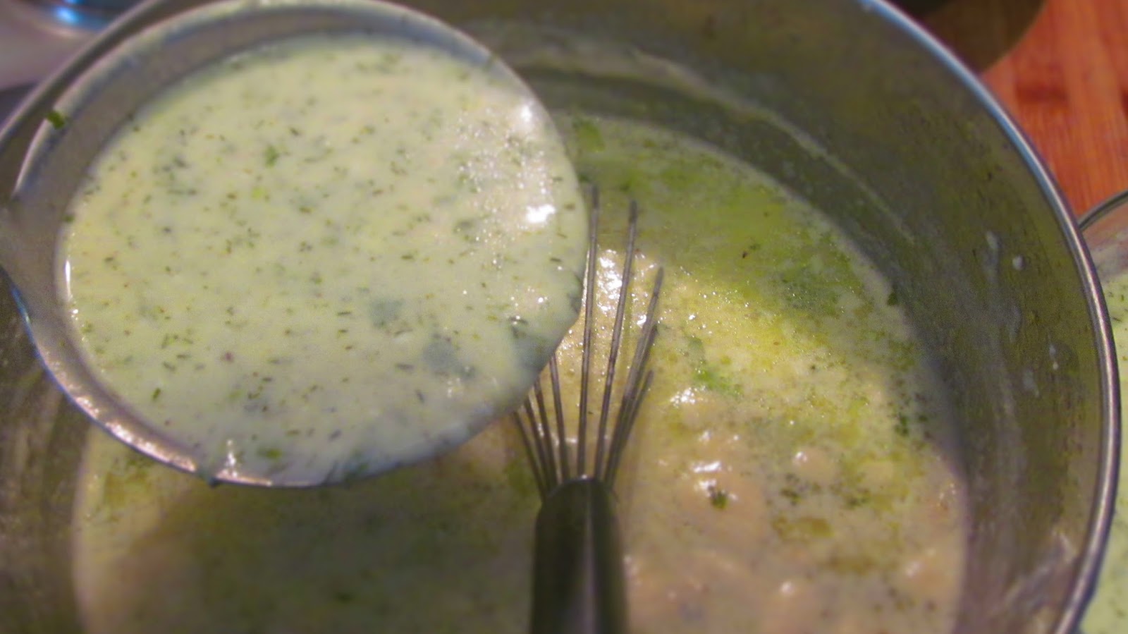 - Разреждам яйчената смес с част от горещата супа до уравновесяването на температурата им и с непрекъснато разбиване.