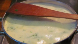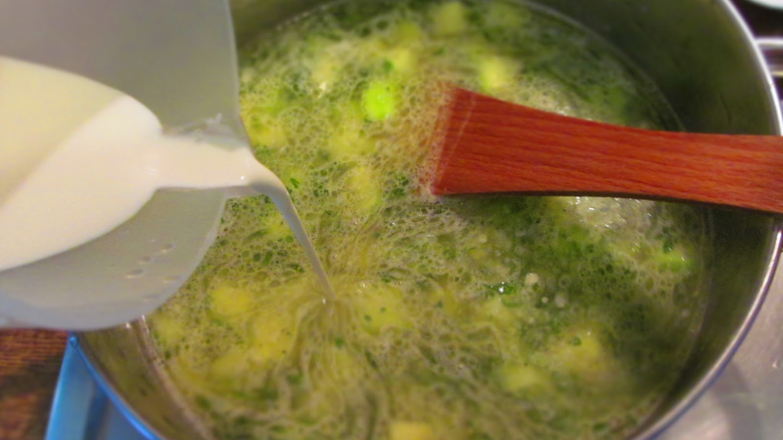 - Оставям супата на слаб котлон да ври минимум 15 минути, но задължително слагам дървена лопатка или лъжица напряко на тенджерата. Това спира кипенето на млякото.