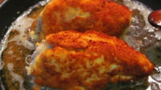 - Загрях мазнината и изпържих пилешкото месо от всяка страна по 2 минути или колкото да получи златиста коричка.