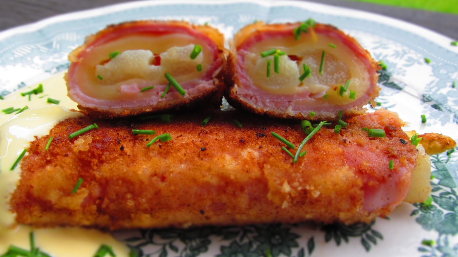 Всичко, от което се нуждаем са пресни бели аспержи, шайби шунка, шайби кашкавал и малко холандски сос.