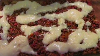 - Върху него намазвам бешамел и поръсвам обилно с пармезан.