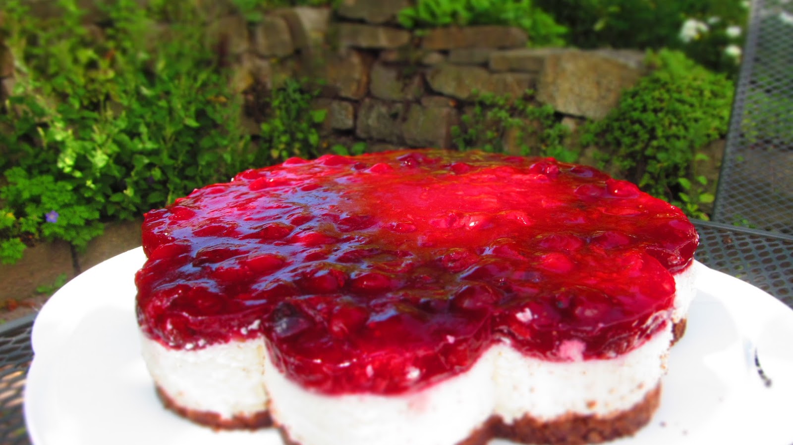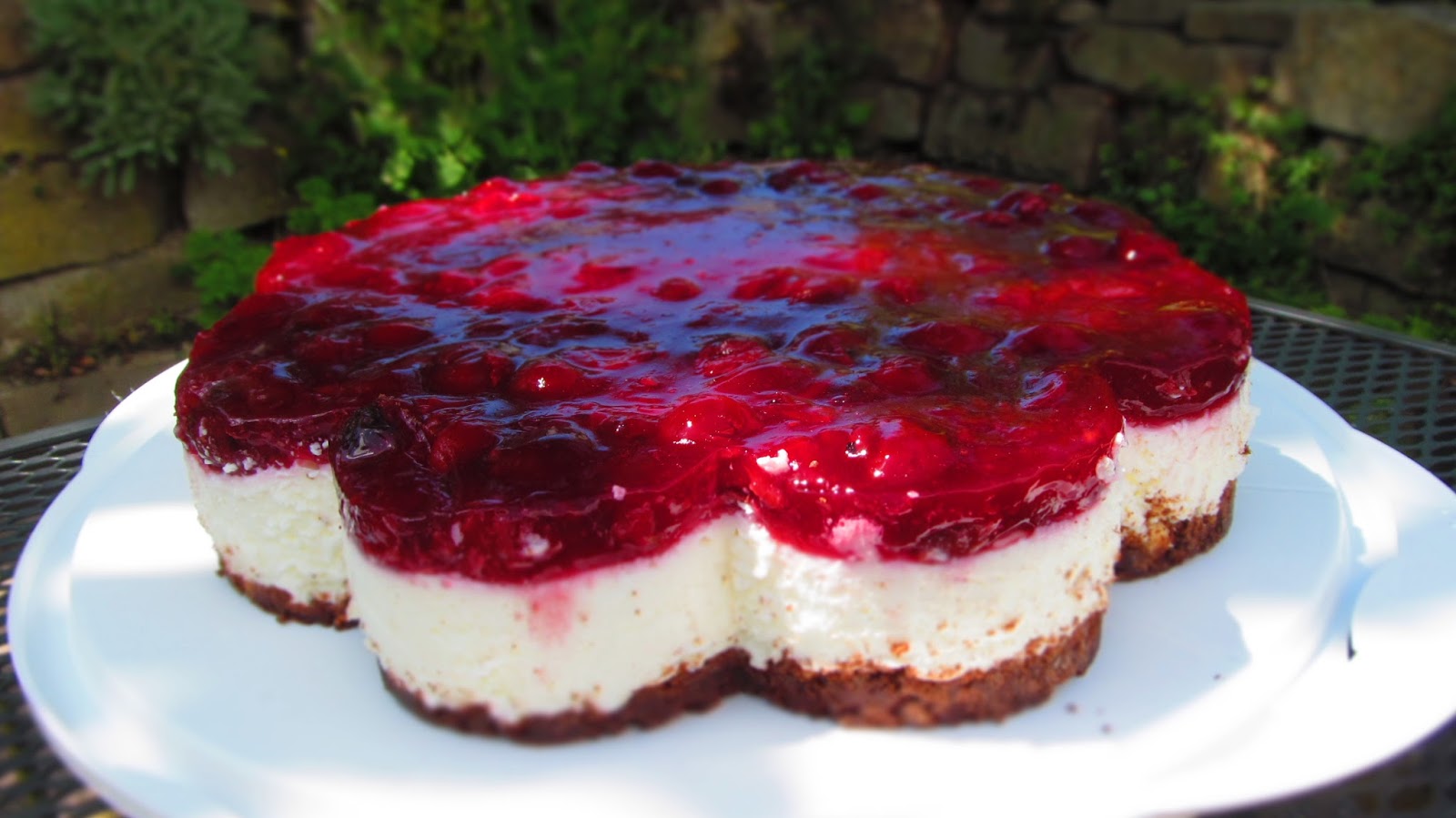 - За плодовото желе използвам готов кисел на Др. Йоткер, но спокойно можете да използвате и компот от череши, но без костилки. Сгъстявам кисела с 1 с. л. царевично нишесте, за да не ми се разтича при отделянето на стените на формата. За компота обаче ще е нужно повече нишесте. Това ще прецените Вие сами.