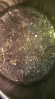 - Загрявам за кратко на котлона и когато стане желатинът течен, дърпам от котлона.