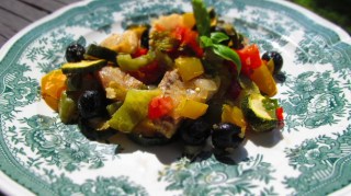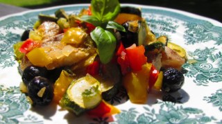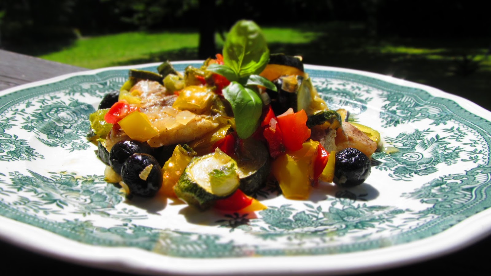 За рецептата се доверих на Гугъл. И невероятен резултат. Вкусна риба с гръмкото име „По калифорнийски“, но с много зеленчуци и маслини.