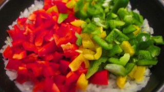 - Добавих към него нарязаните на малки кубчета чушки и задуших за около минута.