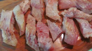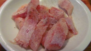 - Аз предпочетох да го обезкостя и филетирам. Нарязах на ленти и полях със сок на един лимон, поръсих със сол и черен пипер и оставих на студено за около половин час.