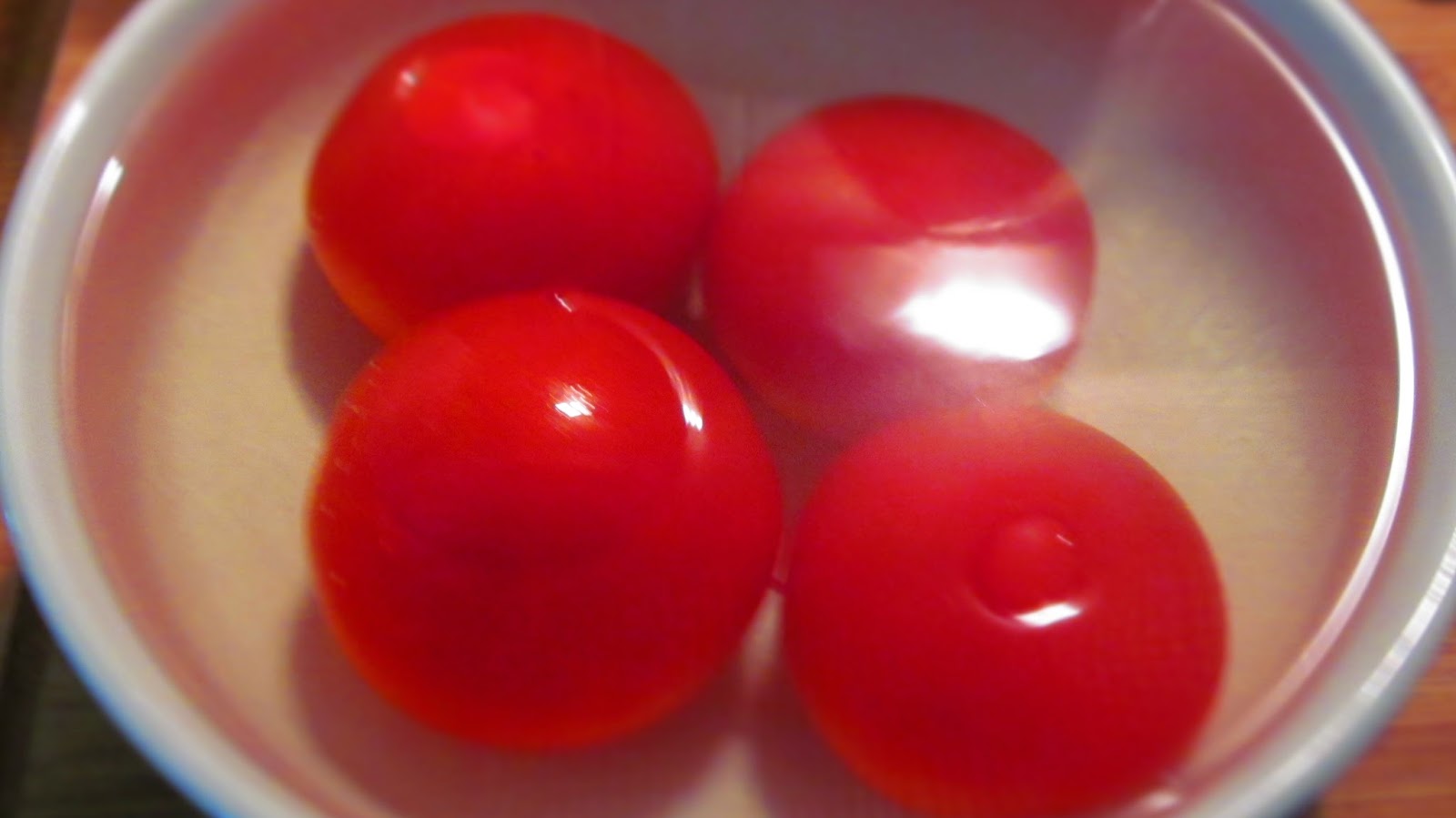 - Заливам доматите с вряла вода за по-лесното им обелване.