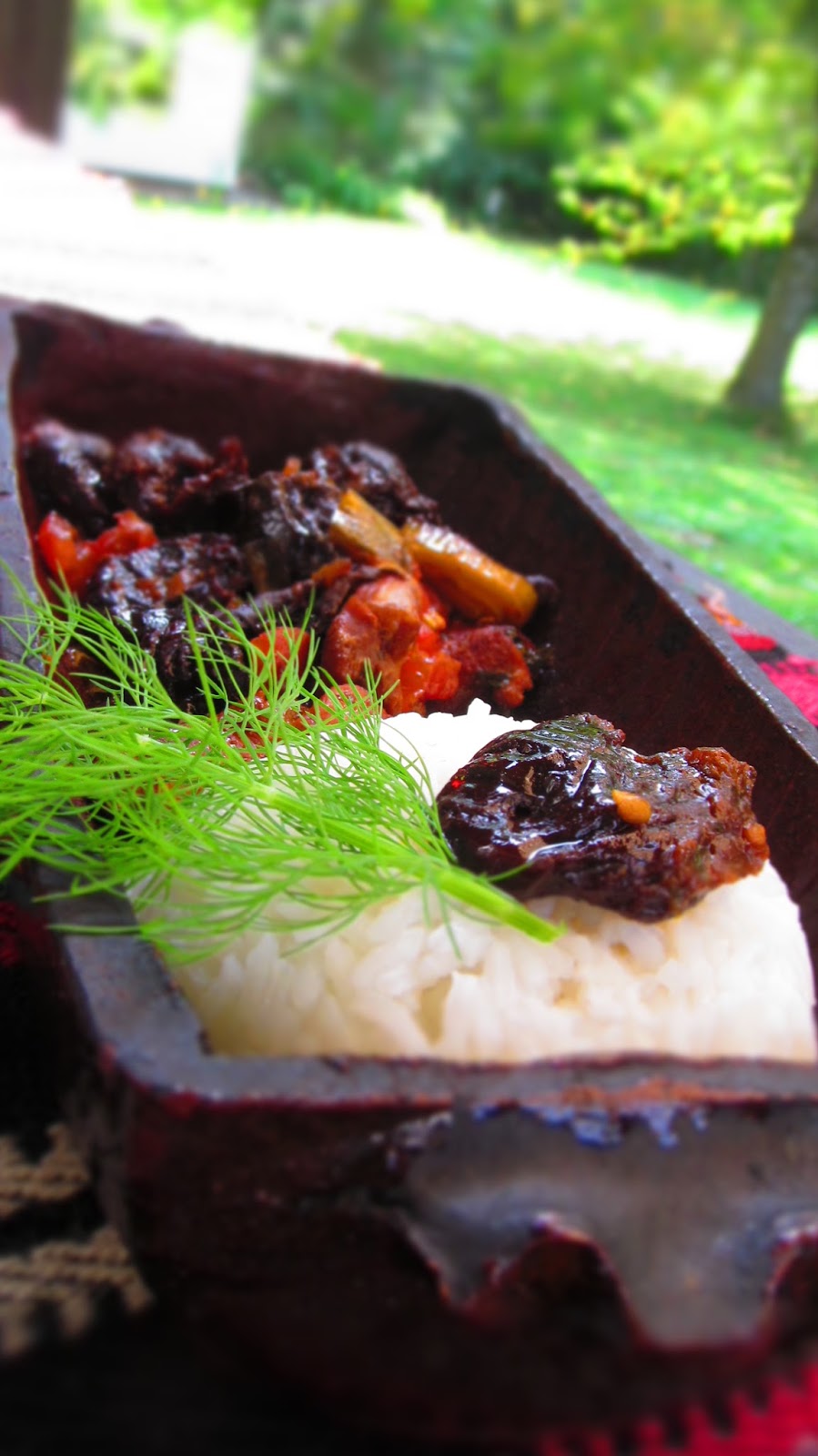 Сервирах ястието горещо със сварен ориз за гарнитура. За да спестя време използвах ориз, който е порциониран и се вари в пакетчетата.
