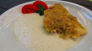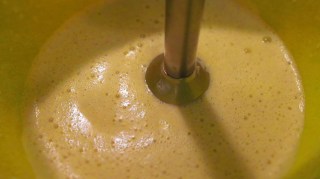 - Точно преди сервиране на ястието, разбивам сметановия сос с пасатор и така получавам пяната.