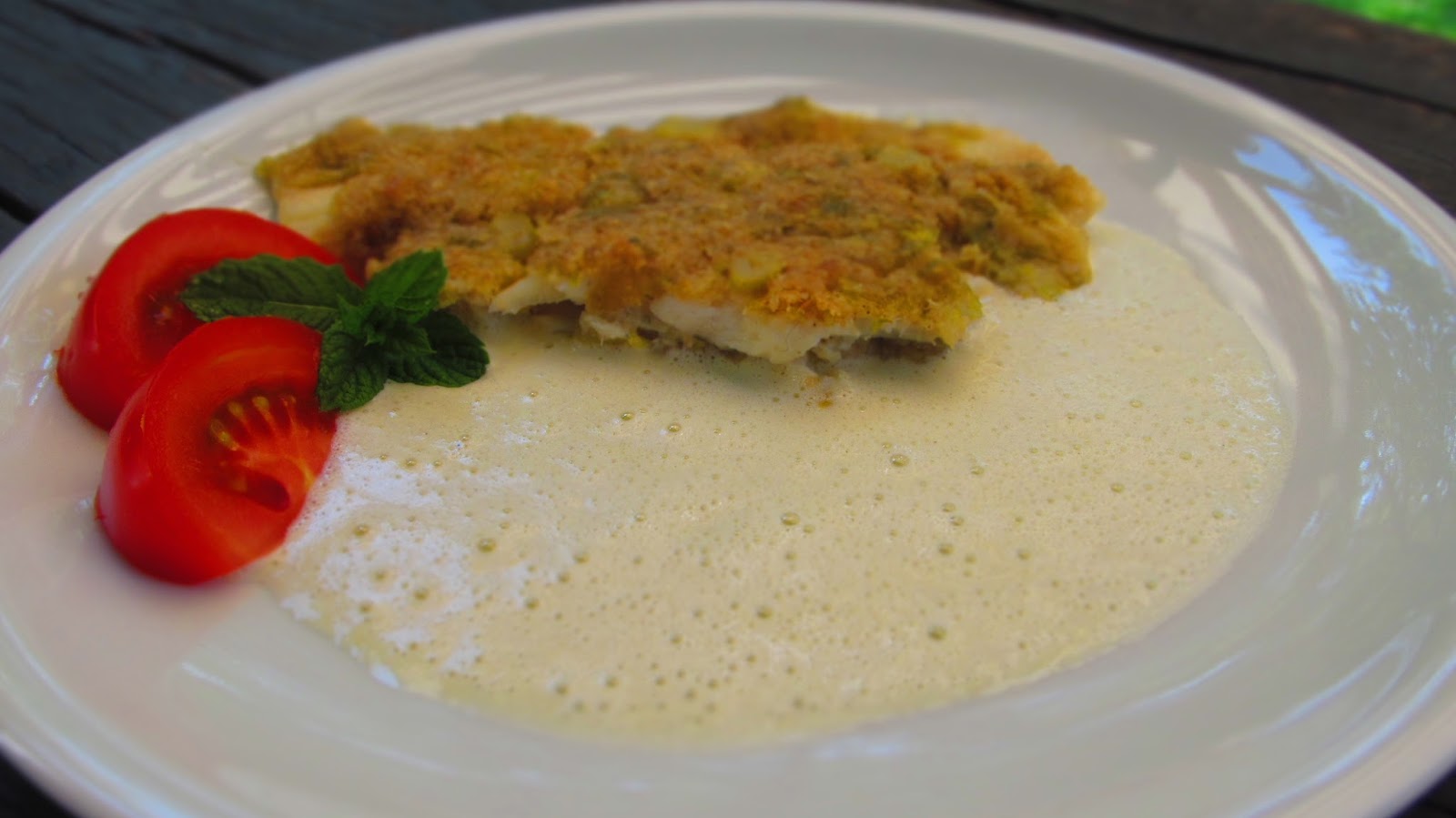 - Точно преди сервиране на ястието, разбивам сметановия сос с пасатор и така получавам пяната.