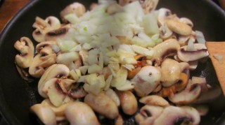 - Задуших гъбите и нарязания на кубчета кромид лук за кратко в 1 с. л. олио.