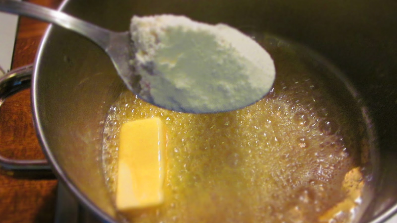 - Разтопих маслото и добавих към него брашното, като разбърквах непрекъснато. Важното е да не залепва брашното за дъното на тенджерката.