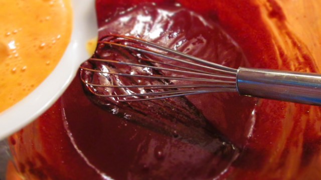 - Най-накрая добавих ванилията и брашното към шоколадово-яйчената смес. Не използвам миксер при направата на този сладкиш.