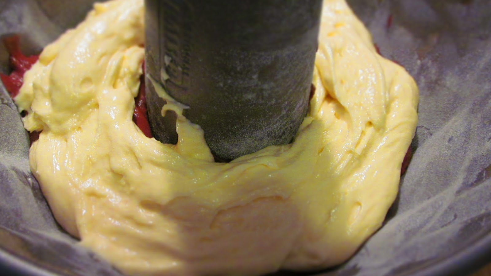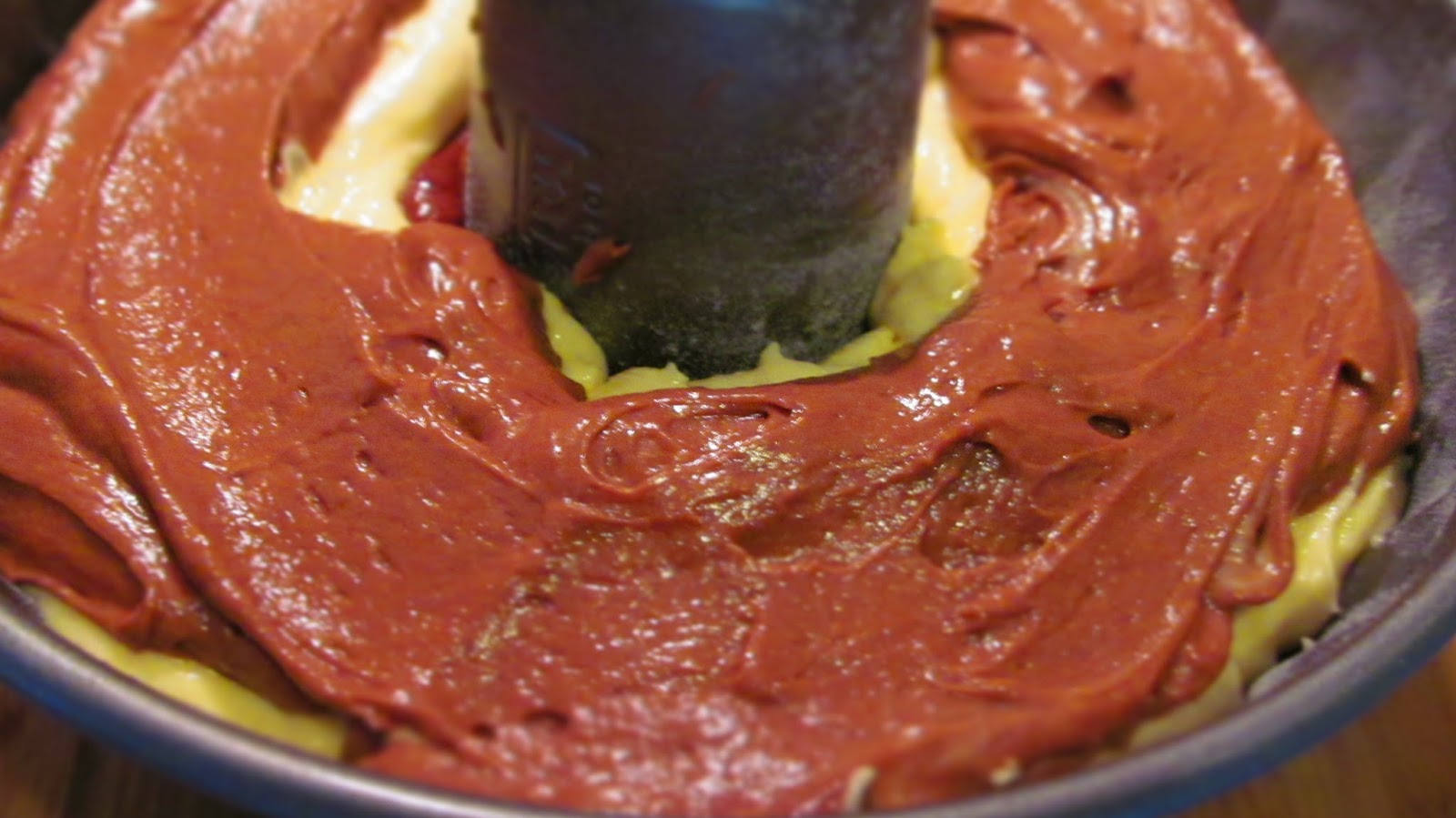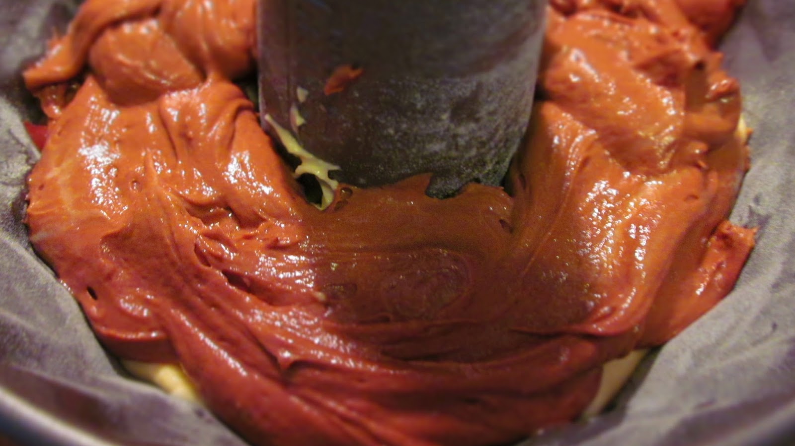 - Изсипах само половината от най-тъмното тесто на дъното на формата.