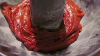 - Покрих с половината от бялото тесто.
