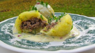 Аз приготвям картофените топки с много сос, защото така това нетипично за нас картофено тесто е много вкусно. Запомнете, че кнедли или тези топки се сервират винаги с много сос.