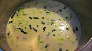 - Сгъстих соса с пакетчето суха супа. Оставих на много слабо соса да къкри.