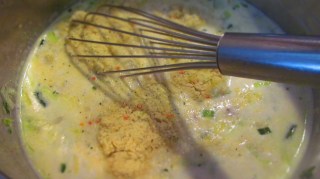 - Добавям към готовото тесто само част от празия лук и подправям със сол, черен пипер и индийско орехче.