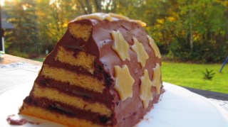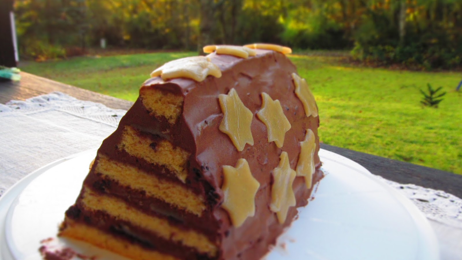 - Оставям на студено да се стегне тортата и тогава украсявам с марципановите звезди. По-добре е тортата да остане на студено цялата нощ.