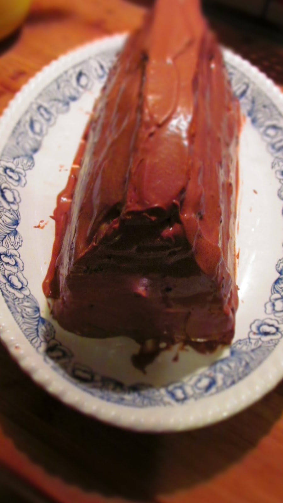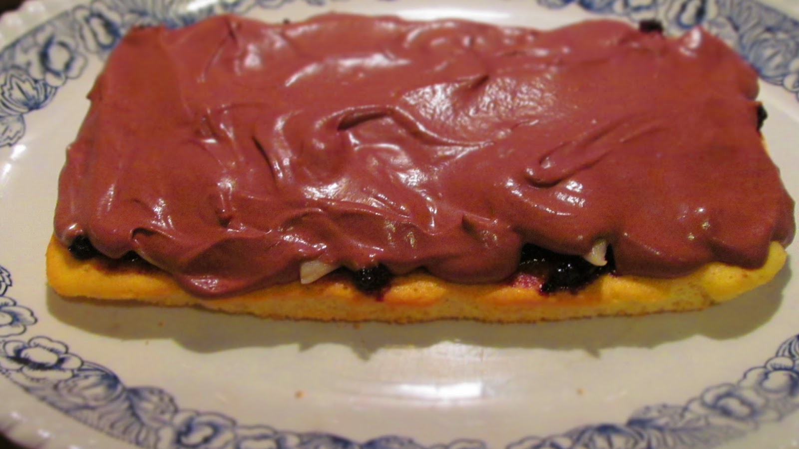 - С останалия шоколадов крем намазвам триъгълната торта от всички страни.