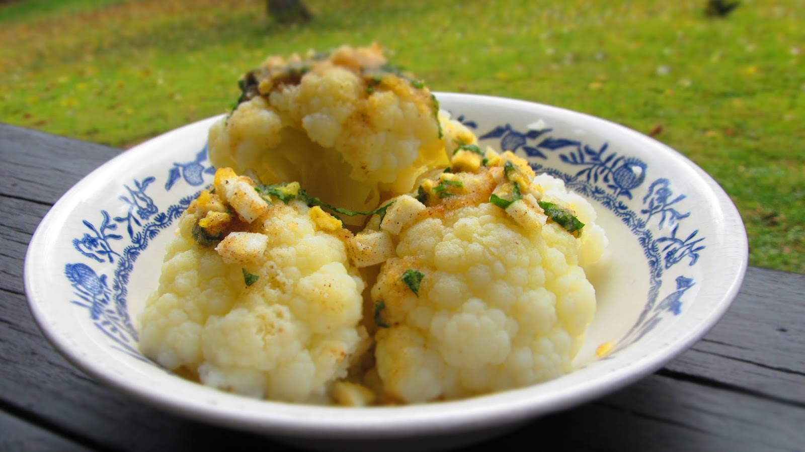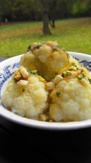 Сервирам добре изцедения от водата карфиол горещ и залят с горещата заливка по полски!