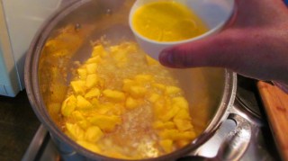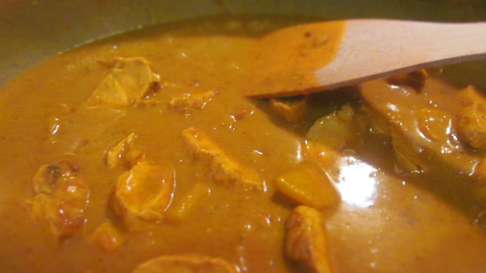 - Добвям кърито и манго чътнито, разбърквам и заливам със сока на портокала и бульона.