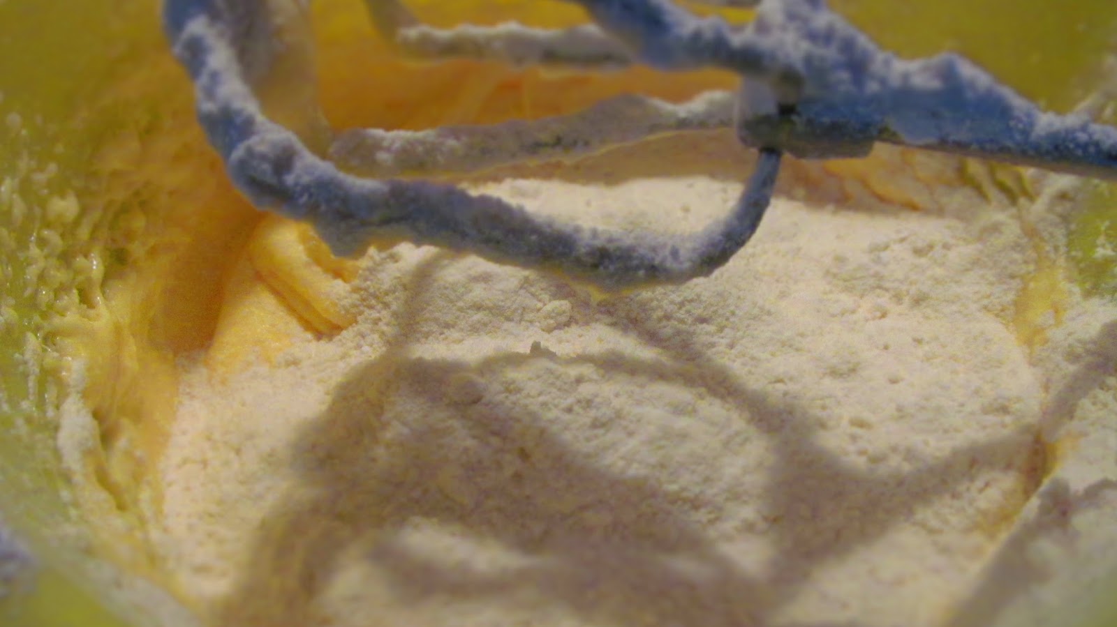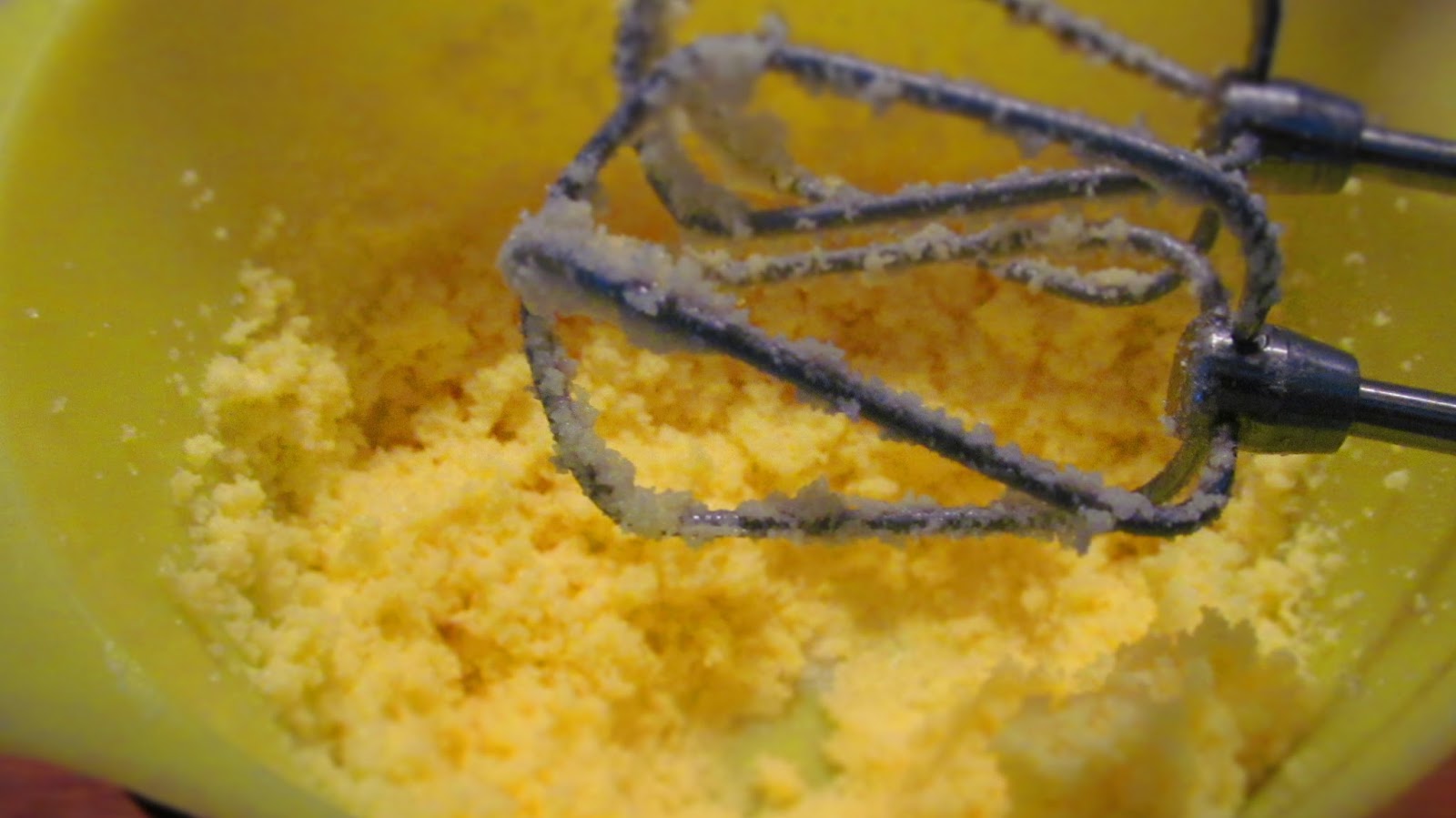 - В купа и с помощта на миксер разбивам палмовото масло със захарта. Добавям яйцата едно по едно, като след всяко разбивам с миксер.