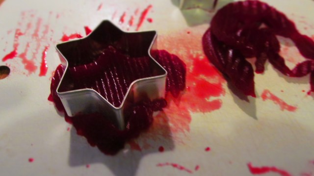 - С помощта на формичката за сладки изрязвам звезди от червеното цвекло.