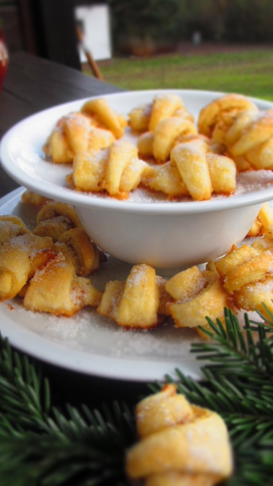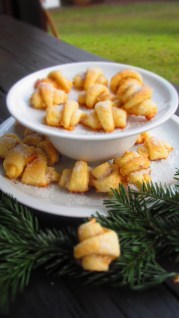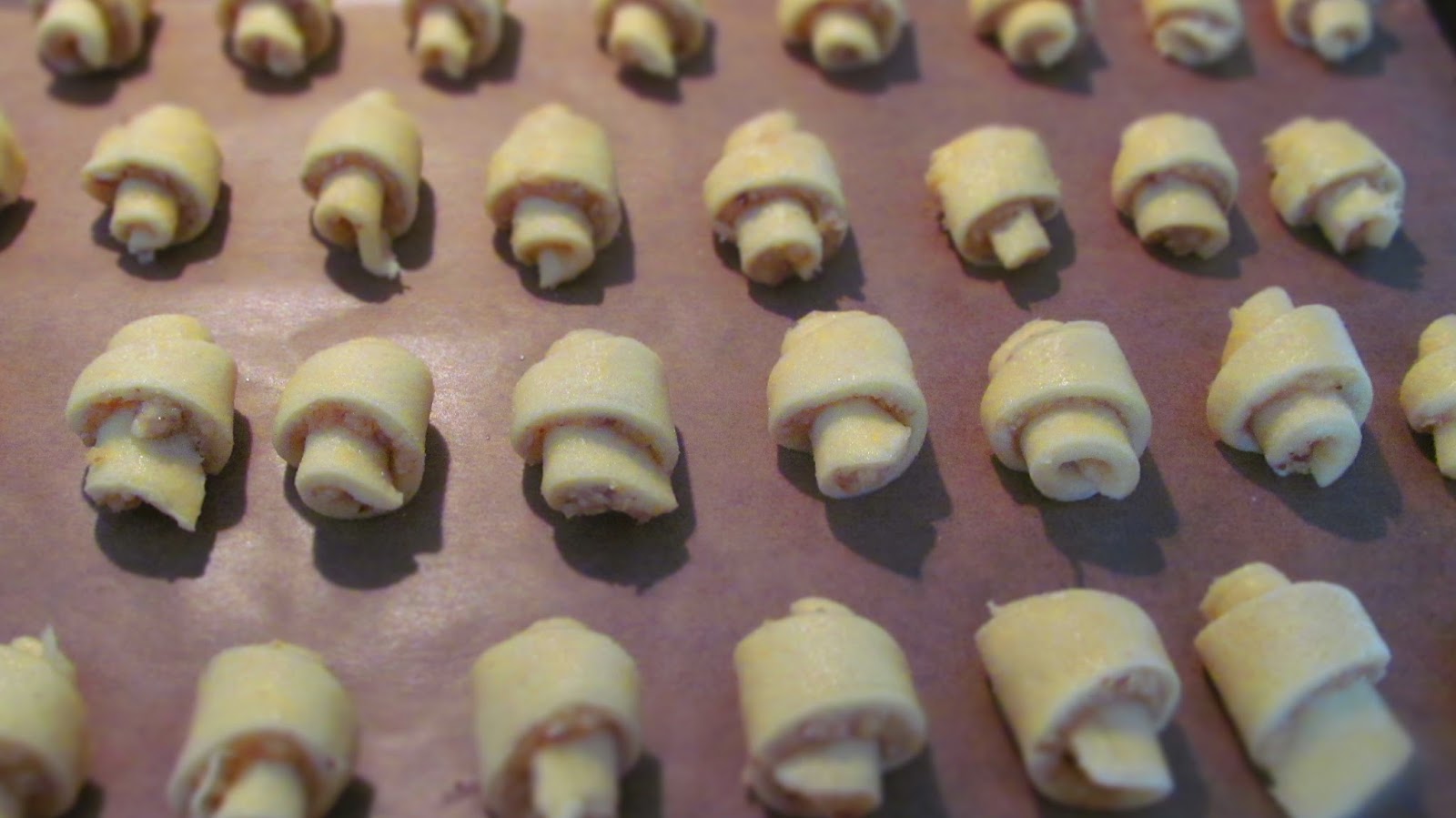 Тези сладки Rugelach- Hörnchen се приготвят по еврейска традиция за Ханука. За съжаление превод на Rugelach-Hörnchen не открих и запазвам тази дума и в заглавието им.