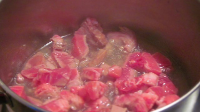 • Плънката на моя Хайдушки калпак е кавърма и аз така и  я приготвих. Нарязах месото на кубчета и запържих в мазнината. Намалих котлона, добавих 50 мл вода и оставих да къкри до готовност и до пълното извиране на водата.
