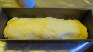 • Намазвам продълговата форма за кекс със зехтин и слагам оформеното хлебче в нея.