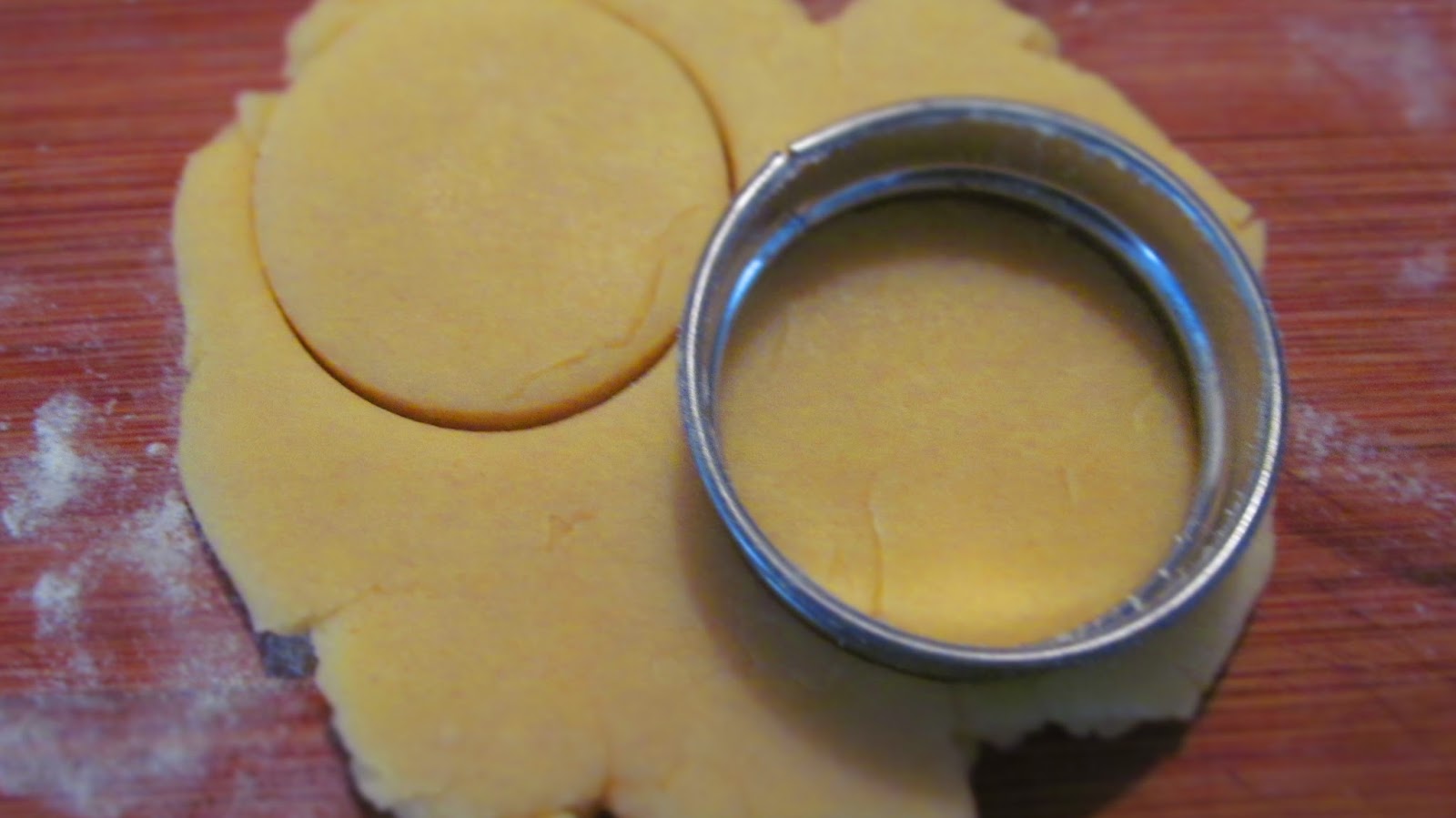 - Разточвам на кора с дебелина около 4- 5 мм и режа с метална формичка или чаша кръгчета с размер на печата.