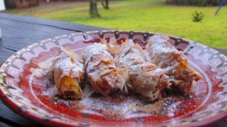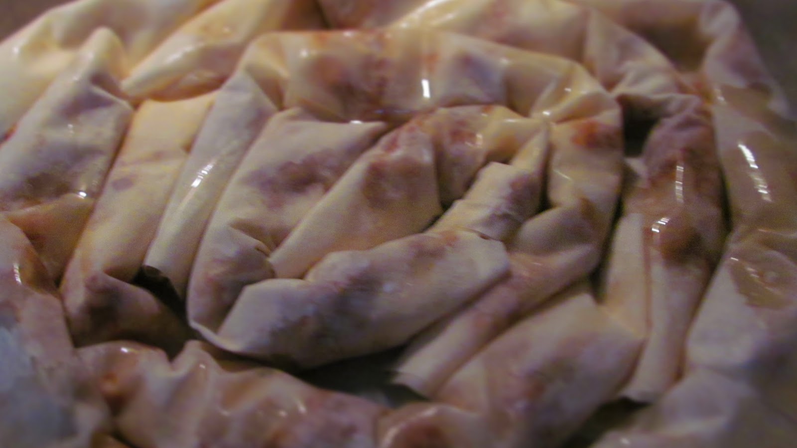 - Така процедирам с останалите кори и плънка, като всяко руло пренасям в тавата и подреждам като охлюв.