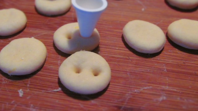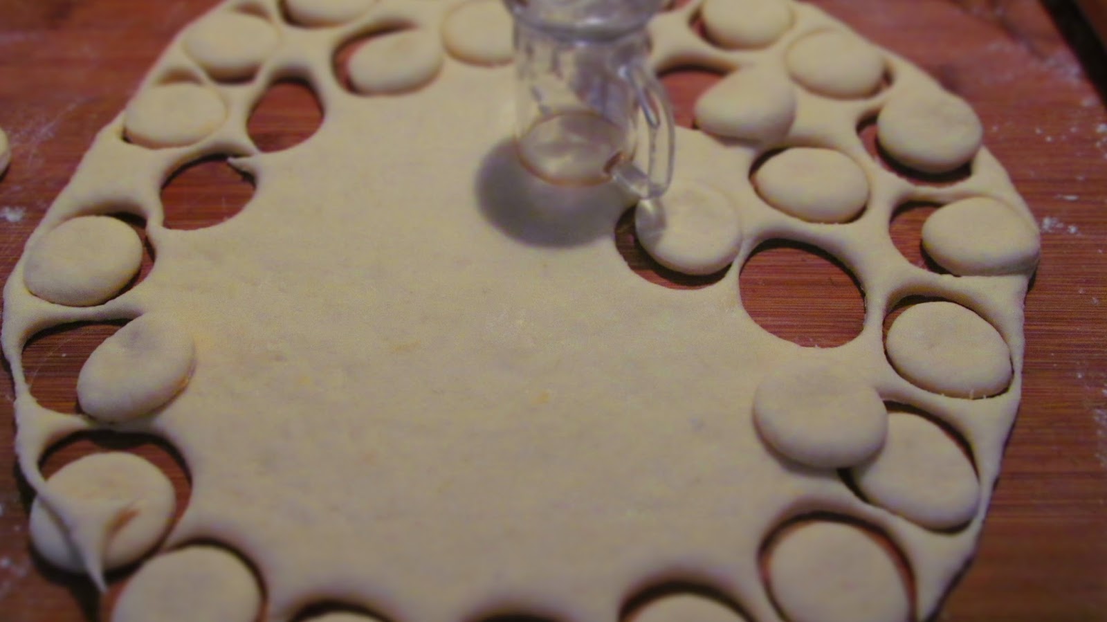 - Разточих и втората топка на кора със същата дебелина и с малка чашка /диаметър 3 см/ изрязах 34 кръгчета.