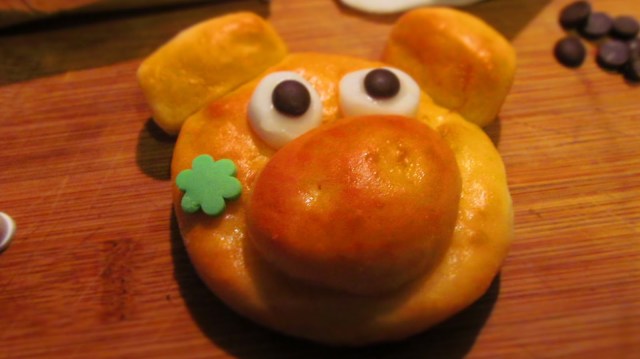 - Очите направих от бял фондан и шоколадови капчици. Но може да се направят и от гъста смес на пудра захар с лимонов сок.