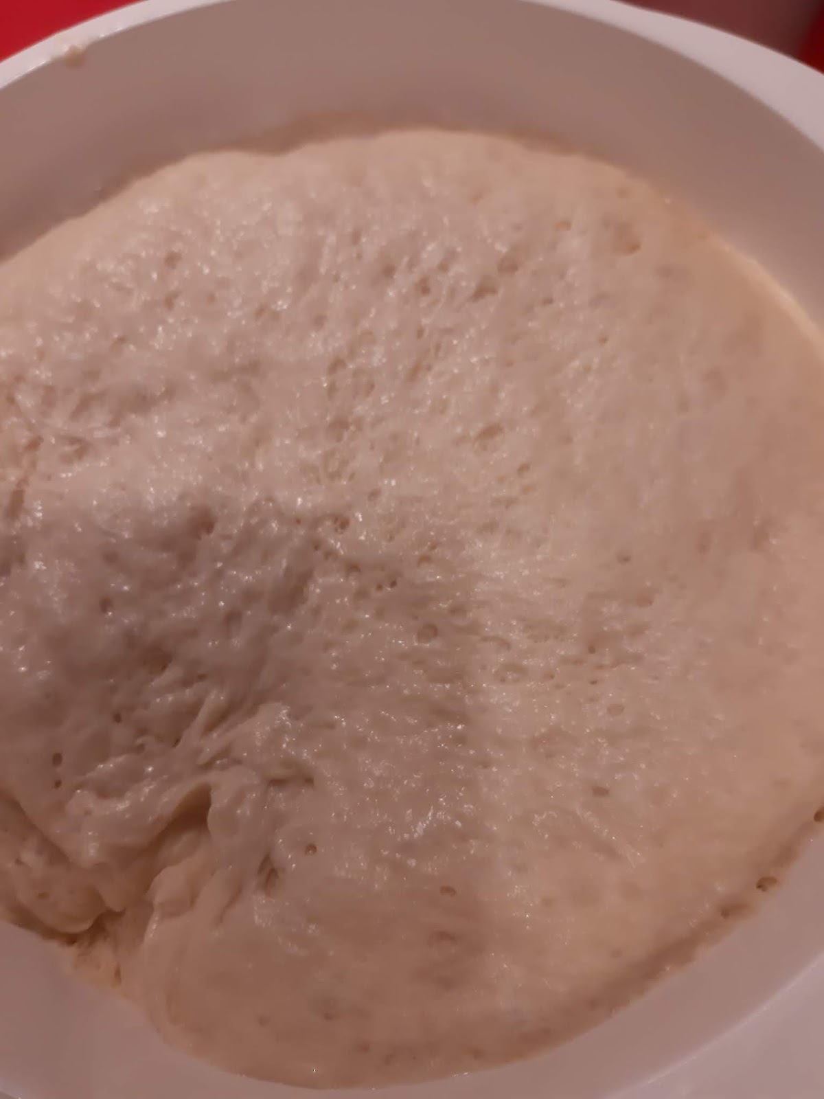 • Оставих тестото покрито с кърпа да втасва за около 30 – 40 минути, или докато увеличи двойно обема си.