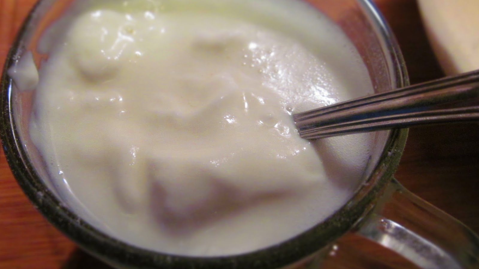 • В киселото мляко разтворих, преди това содата. Аз добавям и оцет, защото немското мляко не е достатъчно кисело за целта.