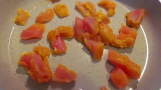 - Домата нарязах на едри кубчета.