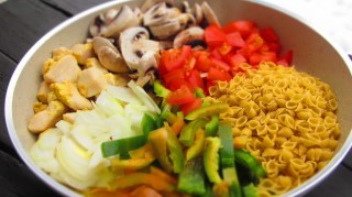 - Дръпнах тигана от котлона и тогава подредих в него всички предварително нарязани зеленчуци.