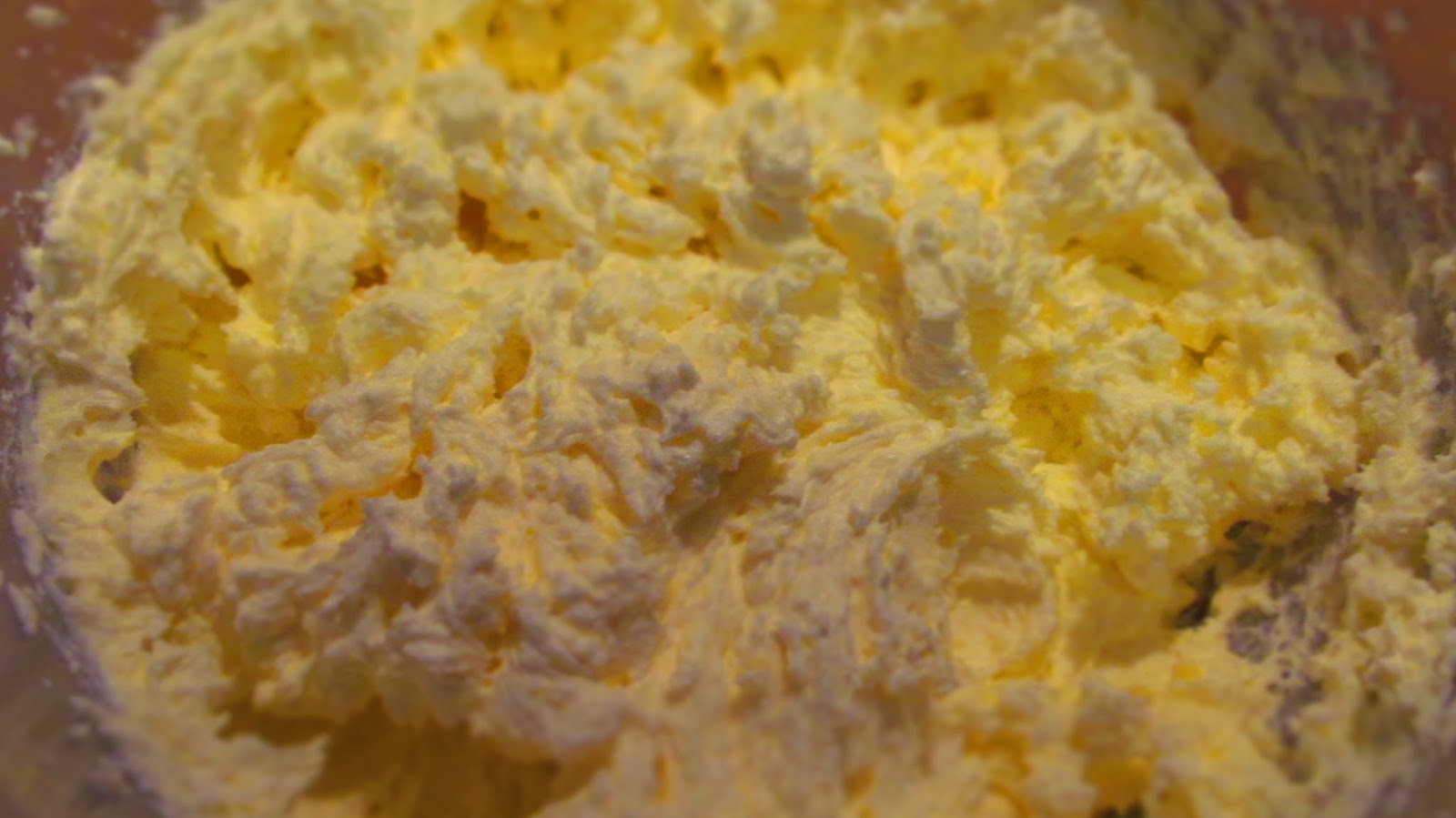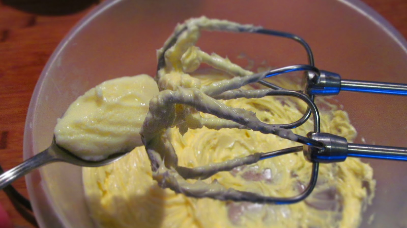 • Направата на масленото тесто е лесна. В купа изсипах мекото масло и започнах да бъркам с миксер. Лъжица след лъжица добавях от пудинга. Важното е той да е също със стайна температура. Това предпазва маслото от пресичане.