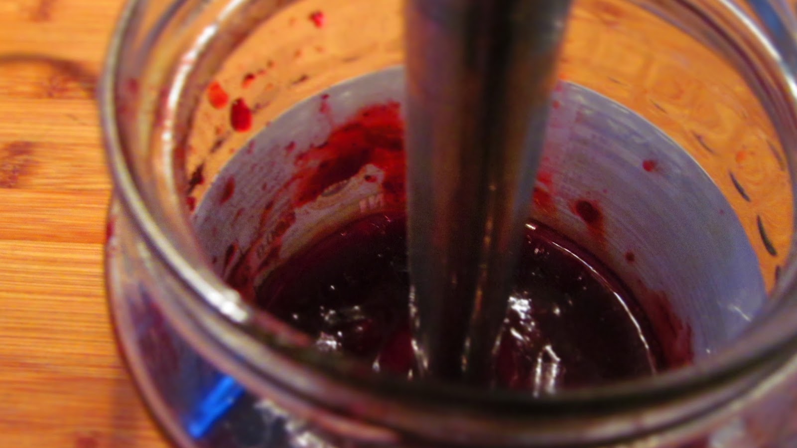 • Приготвянето на плънката е много лесно. Боровинковия конфитюр пасирах с пасатор.