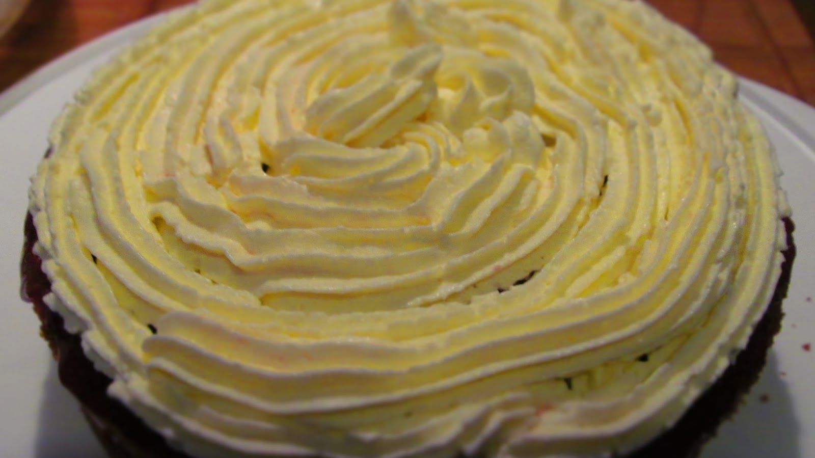 Има един много обичан сладкиш в нашата област /говоря за Германия/ наречен Frankfurter Kranz. Много отдавна му се канех, но пък той си изисква неговата форма за изпичане. Е…няма как да имам всички форми по простата причина, че кухнята ми е много малка и нямам място за всичките съдинки. Така, че решението беше тази мини торта. Във форма за торта /20 см в диаметър/ изпекох блата, който си е кексово тесто. Кремчето направих по традиционния за Франкфурктския венец начин. И ето, че имаме невероятната торта Франкфурт.